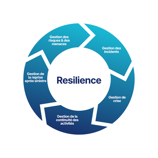 En regroupant la gestion des risques et des menaces, la gestion des incidents, la gestion des crises, la gestion de la continuité des activités et la gestion de la reprise après sinistre dans une approche unique, interconnectée et intégrée, nous aidons nos clients à développer une véritable résilience cyber, non seulement pour se remettre des incidents, mais aussi pour les anticiper, s’adapter rapidement et maintenir les opérations critiques quoi qu’il arrive.